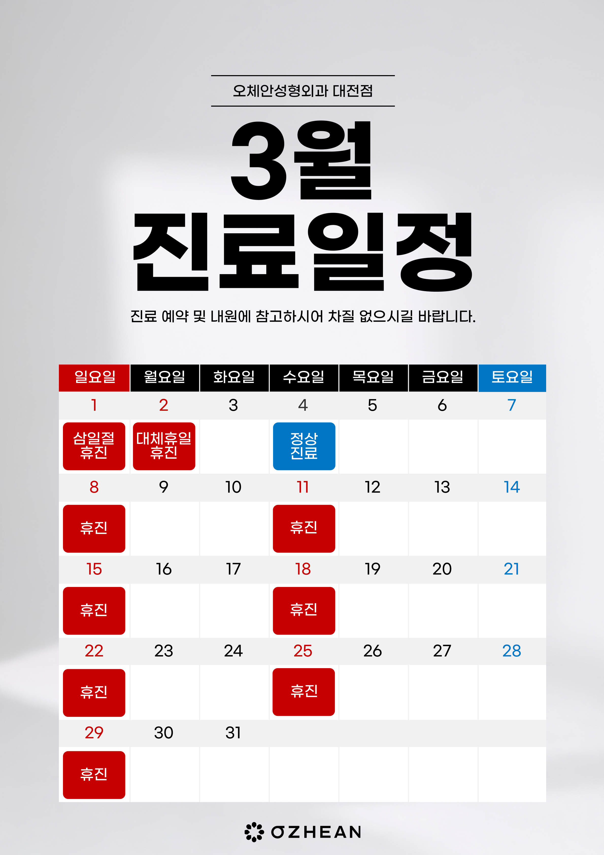3월 진료일정 안내